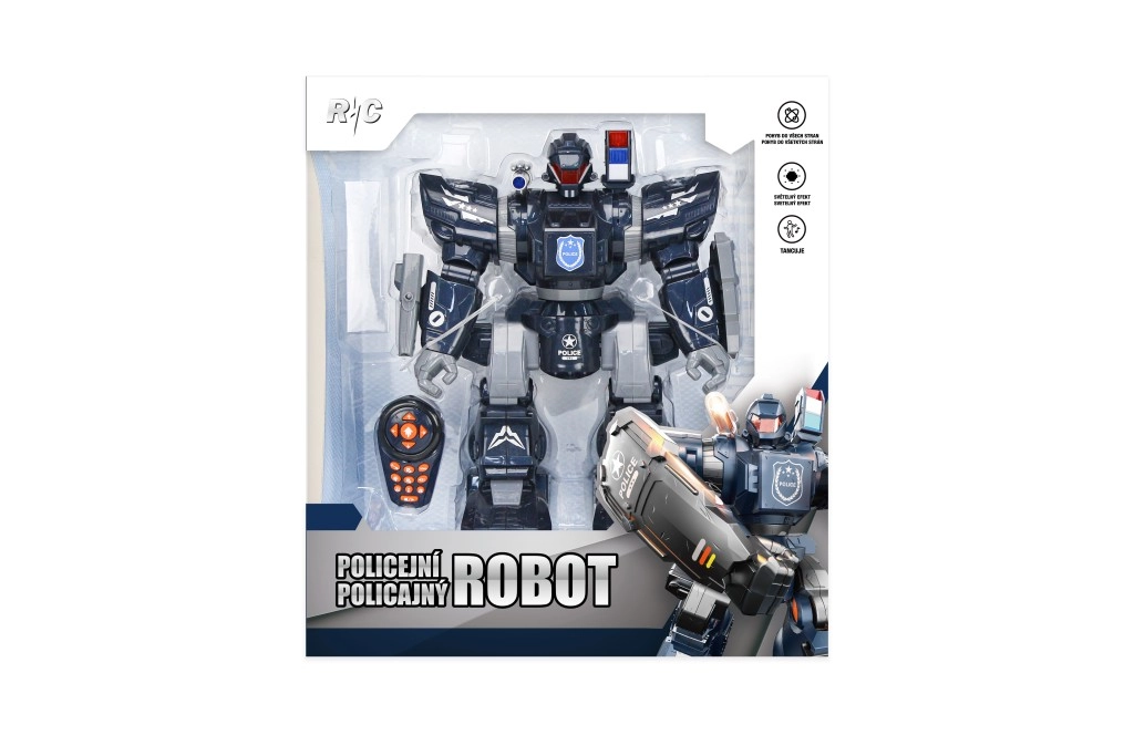 Avastage umbes 38 cm kõrgune interaktiivne politseirobot, mis paistab silma valgusefektide, helide ja kolme tantsumeloodiaga. Kaugjuhtimispuldi abil juhite hõlpsalt liikumist edasi/tagasi, pööramist, helitugevust ja tulesid. Lusti lisab robotikäsi koos projektillidega, mis toetab laste koordinatsiooni ja fantaasia arengut.