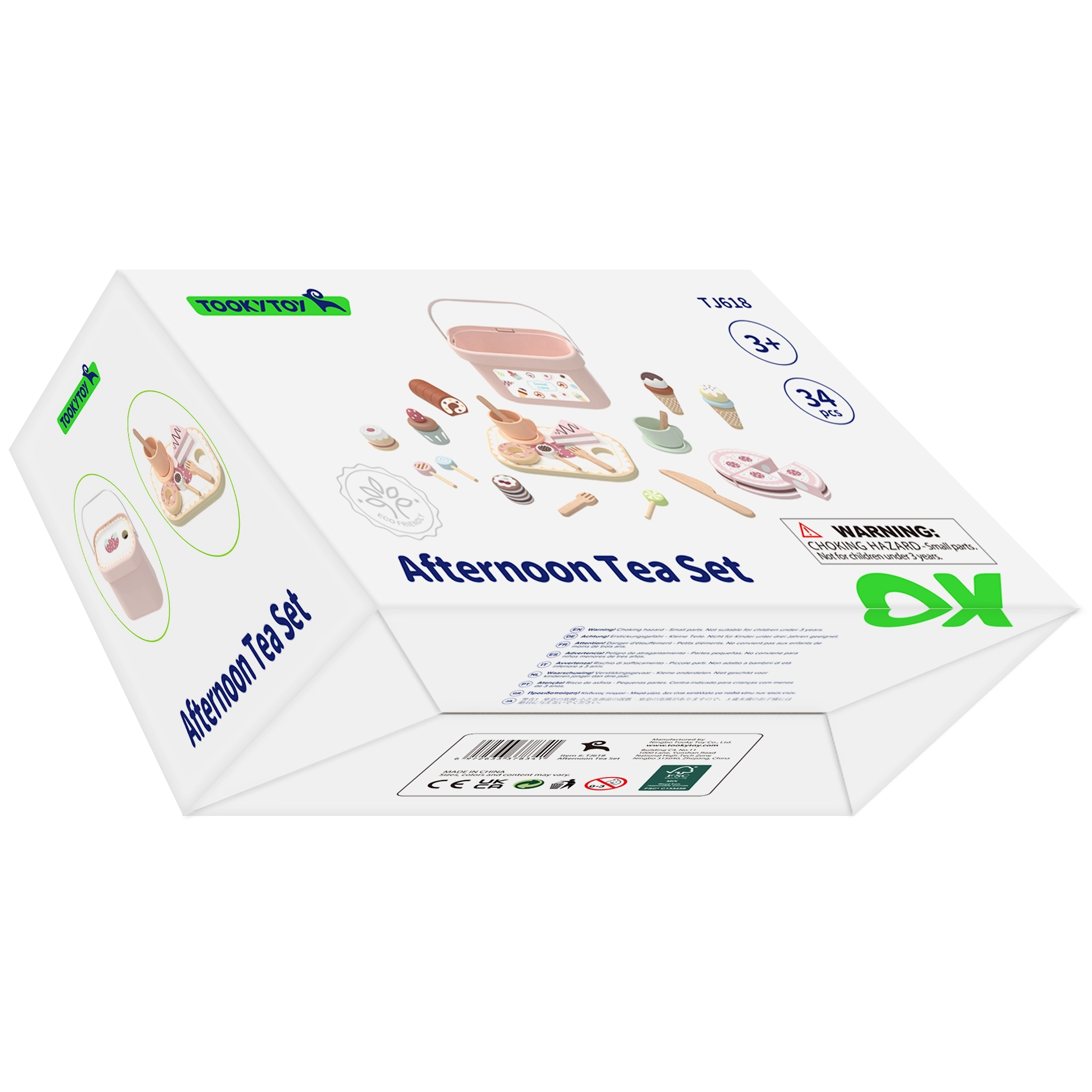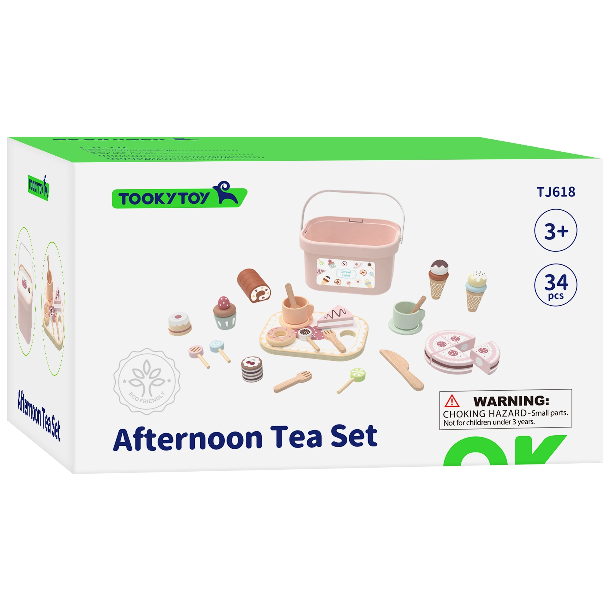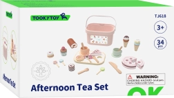 See kvaliteetne puidust maiustuste komplekt pakub kõike stiilseks pärastlõunaseks teeks: lõigatav tort, rullbiskviit, sõõrik, küpsised, makroonid ja jäätis. Lapsed harjutavad peenmotoorikat tükeldades ja vaagnale sättides ning arendavad fantaasiat ja suhtlemisoskust mängides koogipoodi või teekülastust.