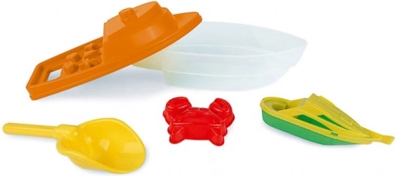 See värviküllane plastikust paadikene on asendamatu lisand igale lapsele, kes armastab rannas mängida. Komplekt sisaldab ka erinevaid vorme ja anumad, mis võimaldavad luua liivas ja vees.