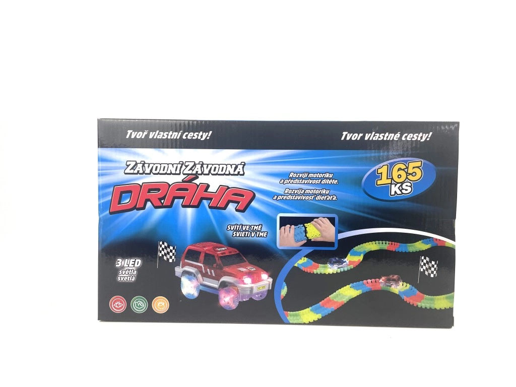 Raja kokkupanek toetab loovuse arengut, peenmotoorikat ja kujutlusvõimet. See helendav rada sobib suurepäraselt nii väiksematele kui ka suurematele lastele, kes armastavad kiireid autosid ja võistlusi.