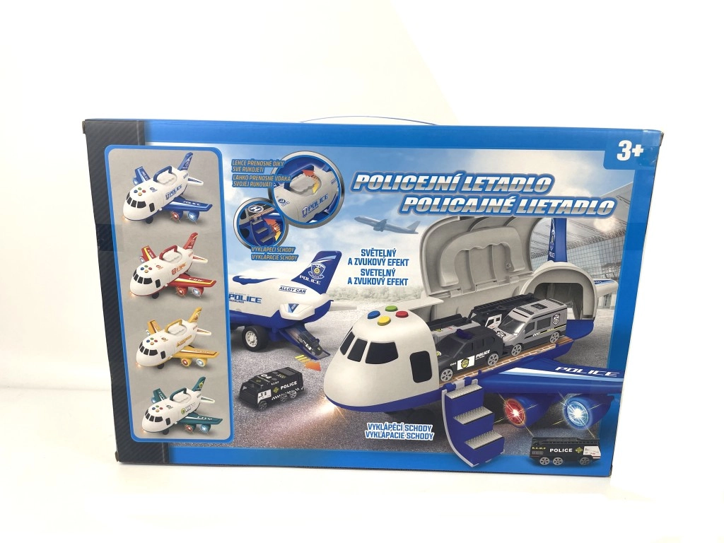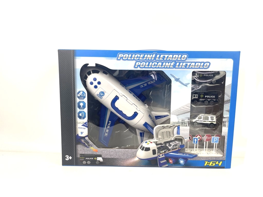 Politseilennuk kaubaruumiga ja 3 väikest autot on suurepärane mängukomplekt lastele. Komplektis on lennuk valgus- ja heliefektidega ning kolm metallist automudelit mõõtkavas 1:64.