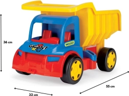 Laste kallurauto Gigant 55 cm on suur 55 cm pikkune veok, mis võlub lapsi võimalusega laadida, maha kallata ja transportida oma lemmikmänguasju. Varustatud esi- ja tagumise kinnituspunktiga haagise või tõmbejoone ühendamiseks. Kallutatav kast mugava käepidemega võimaldab lihtsat kasutamist ja lõputult mänguvõimalusi. Tänu kuni 150 kg kandevõimele sobib kallur ka tõukesõidukiks – kõige pisemad saavad istuda mänguasja peale ja end jalgadega tõugata. Tugev konstruktsioon tagab vastupidavuse, mistõttu on see ideaalne nii õues kui ka toas mängimiseks.