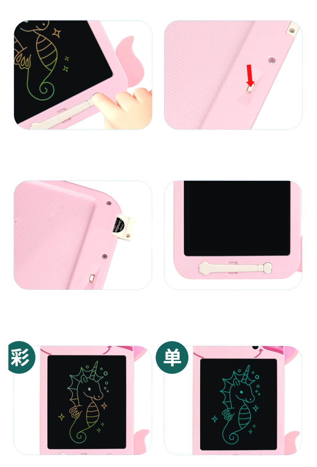 Lase oma loovusel vabalt voolata selle võluva lõbusa ükssarviku kujulise LCD-tahvliga! Joonista, kirjuta ja loo piiranguteta – ühe nupuvajutusega kustutad kõik ja saad uuesti alustada.