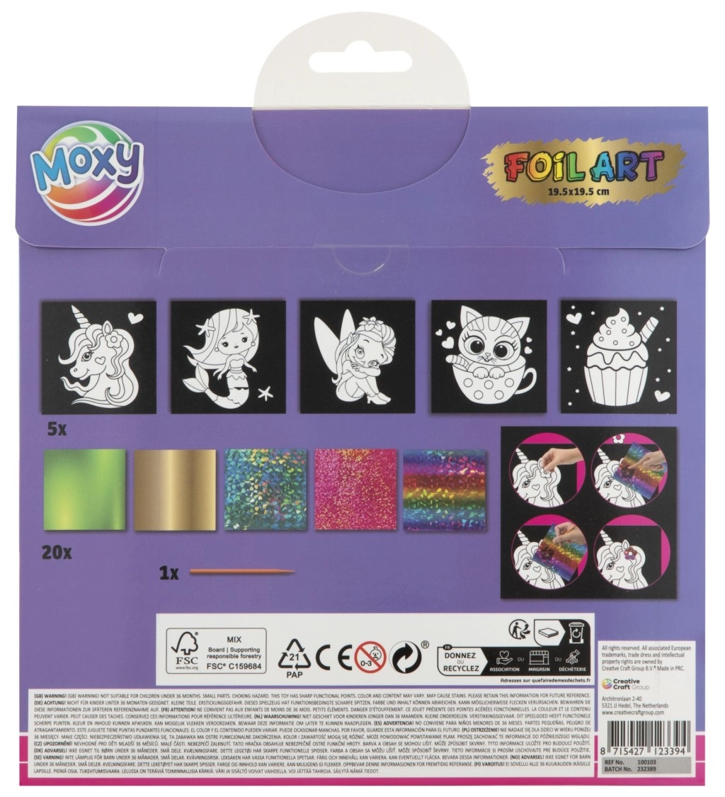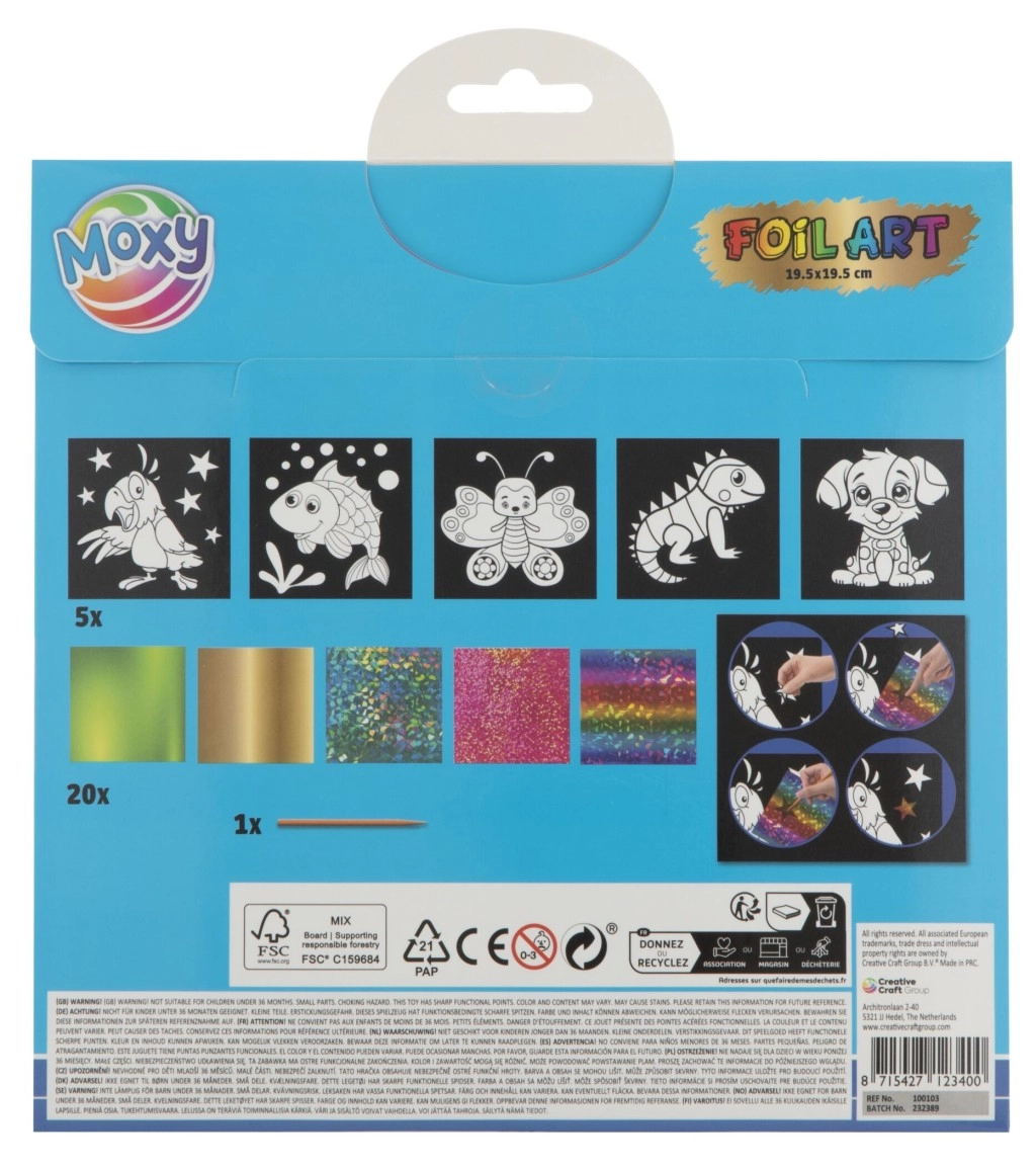 Komplektis on viis erinevat pilti isekleepuvate pindadega, mida saab ise kaunistada. Lapsed saavad kasutada 20 erksat fooliumit erinevate motiividega, mis pakuvad piiramatut loovust. Piisab valida pildi osa, eemaldada kaitsekiht ja kaunistada kleepuv pind valitud fooliumiga.