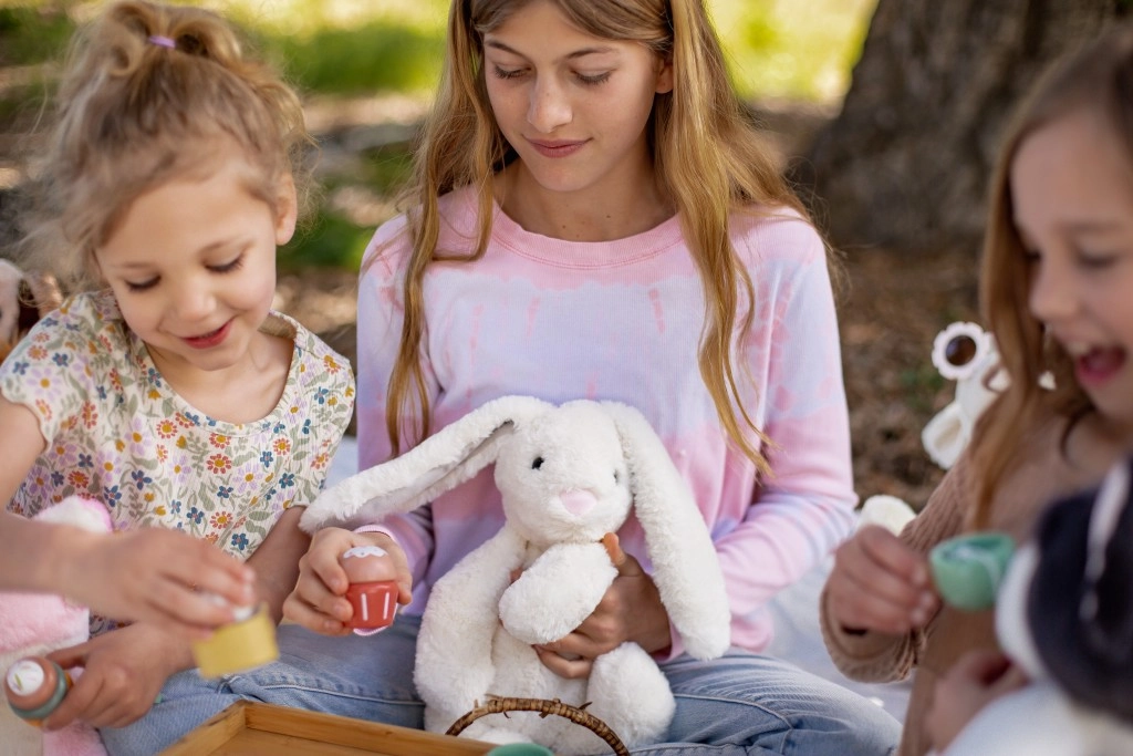 Kreemikas toon ja õrnad detailid muudavad selle jänku kauniks lisandiks igasse lastetuppa.