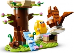 LEGO Kevadine loomade mänguväljak on suurepärane kingitus lastele alates kaheksandast eluaastast ja vanematele. Komplekt sisaldab mesilast, linde, puumaja, lõkkeplatsi, kiike ja kahte lihavõttemuna. Lapsed saavad lasta loomadel mööda rampi puumajja ronida, lõkke ääres istuda või kiigega kiikuda.