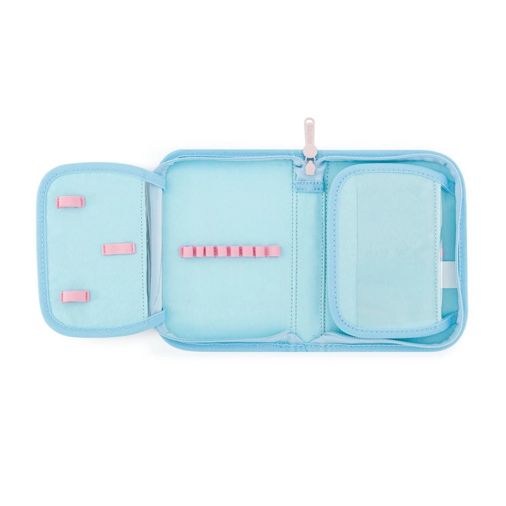Komplekti täiendab praktiline nöörkinnisega kott spordiriiete või vahetusjalanõude jaoks ning ühekorruseline pinal kahe klapiga (ilma sisuta) kummiaasade ja läbipaistva tunniplaaditaskuga.