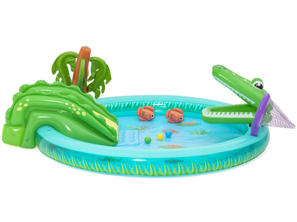 Lisaks veemängule rõõmustavad lapsi ka interaktiivsed elemendid: pallide viskamine krokodilli suhu arendab koordinatsiooni ja täpsust, eemaldatav „kalapüügi“ võrk ja kaks kalakest toetavad kujutlusvõimet ja peenmotoorikat. Pakendis on 3 palli ning paranduspaik toote pika eluea jaoks.