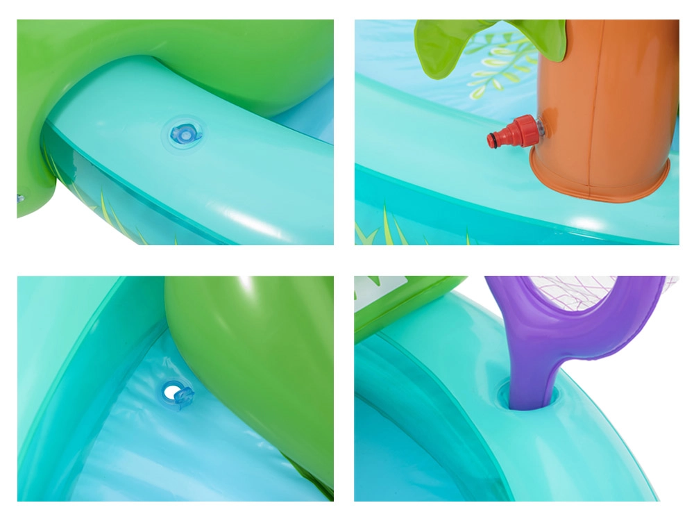 Õrn liumägi pehme maandumisalusega ning palmikujuline pihusti, mida saab ühendada aiavoolikuga, muudavad kuuma päeva värskendavaks veemänguks.
