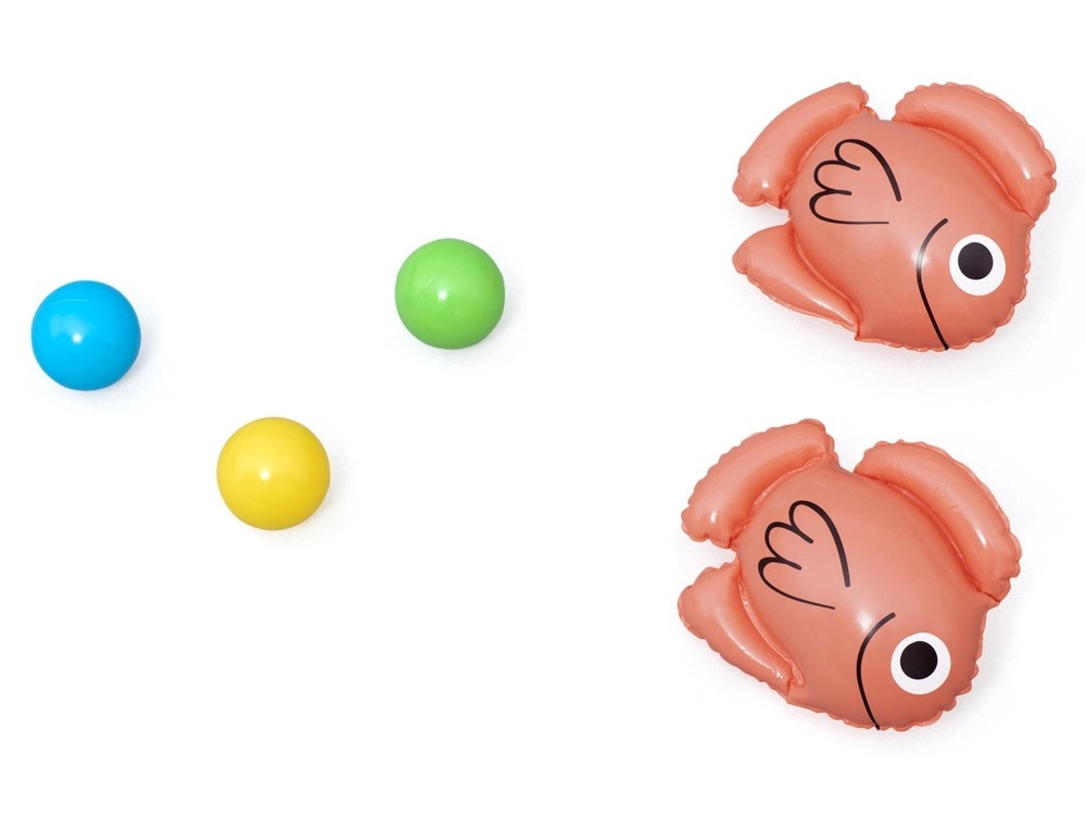 - 1 × bassein, 1 × eemaldatav kalapüügivõrk, 2 × Puffy Pal kalake, 3 × pall, 1 × paranduspaik