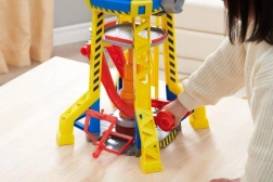 Aseta Rubble liftiga torni tippu kraana juhtimiskabiini. Kasuta kraanat plokkide tõstmiseks ja nende rätta kohta viimiseks. Täiendava üllatuse jaoks vajuta torni suurt punast nuppu, et sisse lülitada tuled ja kuulata seriaalist tuntud helisid. Veelgi suurema lõbu jaoks otsi ka teisi Rubble & Crew sarja ehitusveokeid ja figuure.