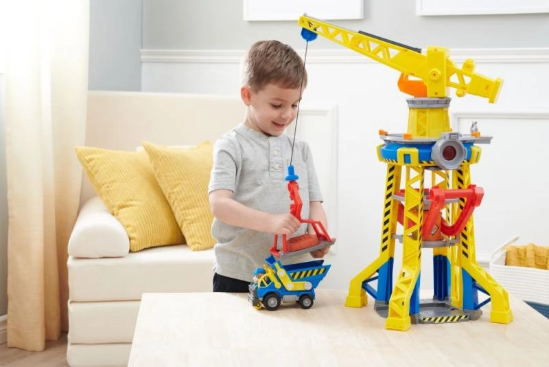 Komplekt Rubble & Crew: Kraanatorn sisaldab realistlikult kujundatud kraanatorni, täpselt nagu seriaalis, koos tõetruude ehitustööriistadega, mis sobivad lastele. Tornil on kineetilise liiva vormimissüsteem, mis võimaldab valmistada oma ehitusblokke. Lihtsalt kasuta suurt punast kangi, et käivitada press ja luua oma ehitusklotse.