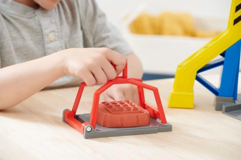 Võimaldab lastel luua oma ehitusplokke kineetilise liiva abil. Lapsed saavad punase kangiga käivitatava pressi abil oma konstruktsioone vormida ja seejärel nendega tegutseda.