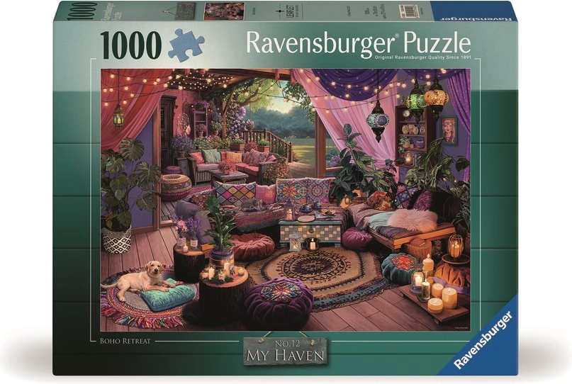 Nauti loovat väljakutset koos Ravensburger puslega Minu hubane boho pelgupaik. See pusle pakub: