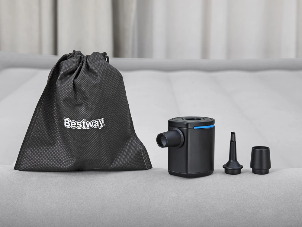 Tänu läbilaskevõimele 90 l/min saab pump kiiresti nii täis- kui ka tühjapumpamisega hakkama. Juhtimine on intuitiivne – piisab ühest nupust. Kolme otsikuga sobib enamikule tavalistele ventiilidele täispuhutavatel madratsitel, ujumisrõngastel, lamamistoolidel ja matkamatitel.