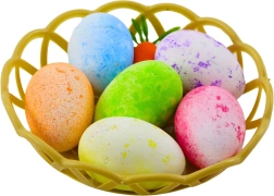 See kaunis lihavõttekomplekt, mis koosneb värvilistest, õrnade täppidega munadest ja stiilsest plastporgandist, paigutatuna detailse disainiga plastkorvikesse, on ideaalne kevadise meeleolu loomiseks. Munad on valmistatud kergest ja vastupidavast polüstüreenist, samas kui plastist korvike tagab stabiilsuse ja lihtsa hoolduse.