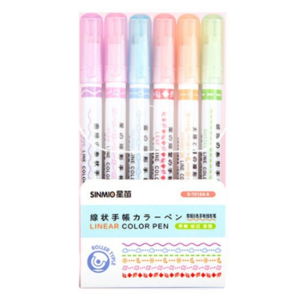 See dekoratiivsete markerite komplekt pakub kuut säravat värvi ja erinevaid mustrilisi joonejälgi, millega on lihtne märkmeid esile tõsta, kaarte kaunistada või luua originaalseid illustratsioone. Püsiv, pleekimiskindel tint tagab iga kasutuskorra puhul puhtad ja selged jooned.