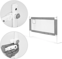 Universaalne kinnitussüsteem lihtsustab paigaldust eri tüüpi vooditele ning võimalus ühendada mitu paneeli loob kaitstud ala ümber voodi. Vastupidav terase, PP ja kvaliteetse tekstiili kombinatsioon tagab stabiilsuse ja kerge hoolduse – kate on eemaldatav ja pestav.