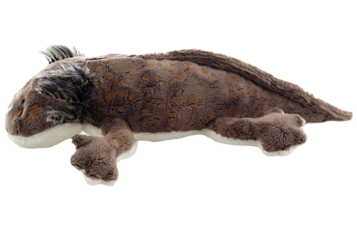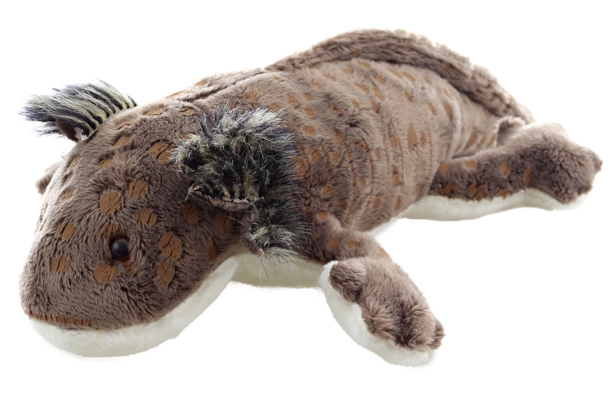 See pruun plush-aksolotl rõõmustab nii väikseid kui suuri loomaarmastajaid. Pehme keha õrna karva ja silmapaistvate täpikestega mõjub realistlikult, jäädes samas äärmiselt siidiseks ja meeldivaks puudutamisel. Tänu kompaktsale 28 cm pikkusele sobib see ideaalselt voodisse, vankrisse ja kaasa võtmiseks.