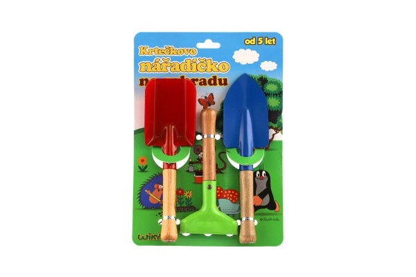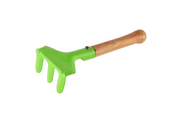 See värviline kolmest osast koosnev laste tööriistakomplekt on loodud olema vastupidav, kerge ja hõlpsasti käsitsetav lastele alates 5. eluaastast. Metallist tööosad tulevad toime tavaliste aiatöödega, samas kui ergonoomilised puidust käepidemed sobituvad hästi lapse kätte.