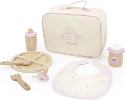 Komplekt sisaldab kõike, mida väikesed hoolitsejad vajavad: taldrik, teelusikas, kahvel, lutt, kaks pudelit ja pehme pudipõll. Tänu turvalisele teostusele sobib mänguasi alates 3. eluaastast ning saab lemmikuks lisandiks lastetoa kööki ja nurgakesse nukkudele.
