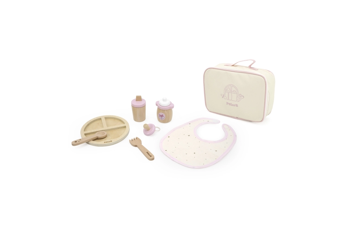 POLARB nuku toitmiskomplekt ühendab kvaliteetsed puidust komponendid pehmete tekstiilidega õrnas disainis. Kõik on kompaktses tõmblukuga kotikeses, mis sobib nii koju kui ka reisile. Nuku eest hoolitsemise mäng toetab loomulikult empaatilist käitumist, vastutustunnet ja peenmotoorikat.