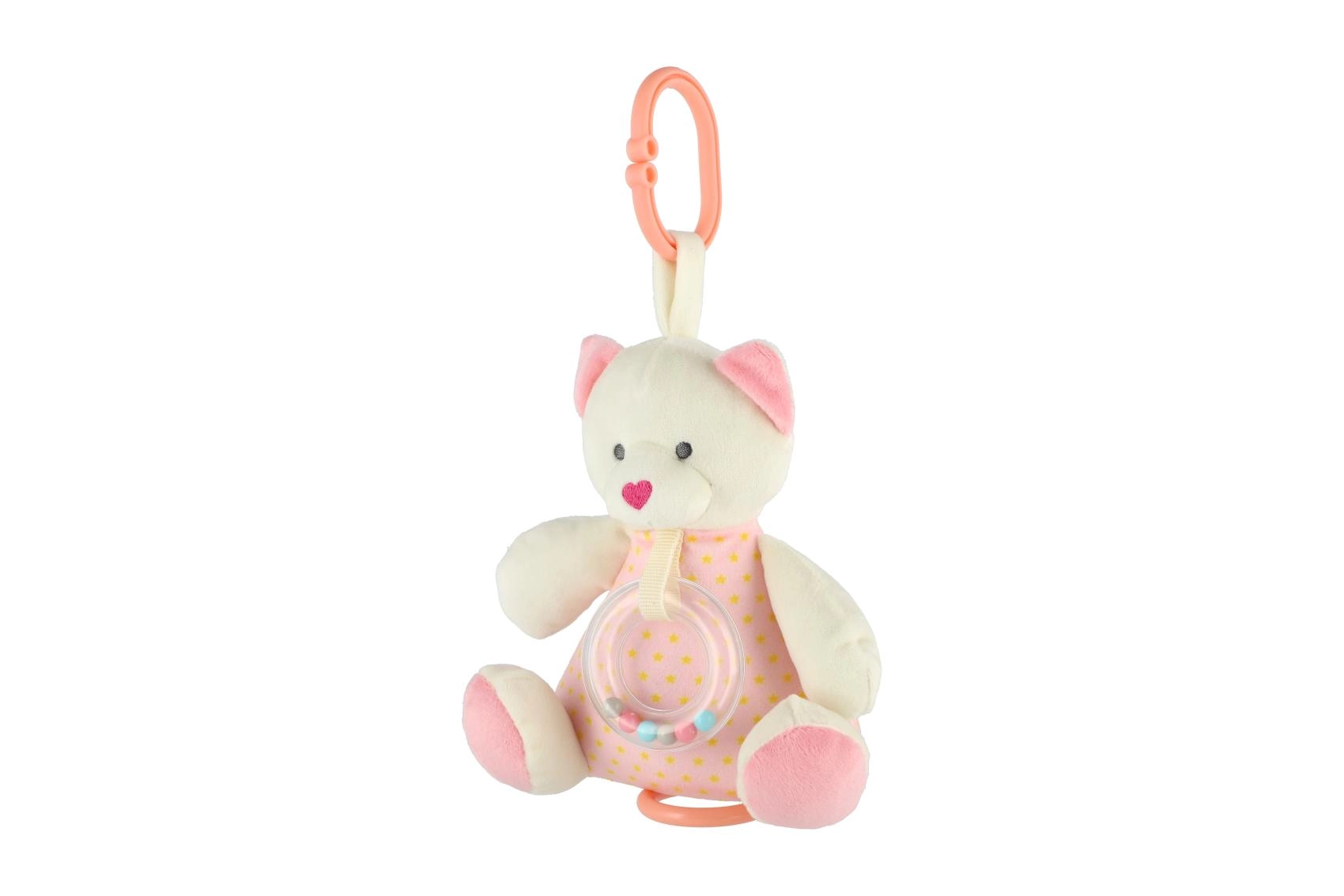 Armas mängiv plüüsist karu suurusega 18 cm õrnas roosas toonis pakub rahustavat heli, ülipehmeid materjale ja ohutut teostust ilma teravate servadeta. Suurepärane kaaslane voodisse ja vankrisse, aidates lapsel kergemini uinuda ning arendada taju tänu õrnadele tekstuuridele ja vaiksele kõrinamürale.