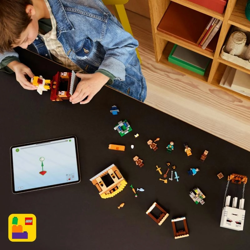 Komplekt toob kohale ehtsa MINECRAFTi meeleolu: plokiline arhitektuur, armastatud mobid ja tegelased ning rohkelt interaktiivseid elemente loovaks mänguks. LEGO Builderi rakendusega saavad lapsed mudeleid hõlpsalt suumida, pöörata 3D-s ja jälgida ehituse edenemist.