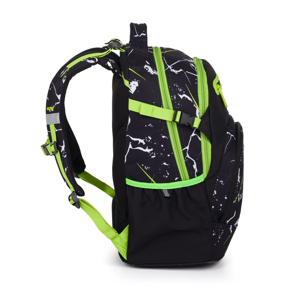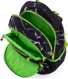 Seest leiad 2 avarat sektsiooni õpikutele ja vihikutele, elastsest materjalist küljetaskud joogipudelile ning eesmise tasku pudinatele või suupistetele. Helkurelemendid suurendavad nähtavust ja ohutust nii kooli minnes kui tulles. Mahutavusega 28 l, kaaluga 960 g ja kandevõimega 8 kg on see usaldusväärne kaaslane igaks päevaks.
