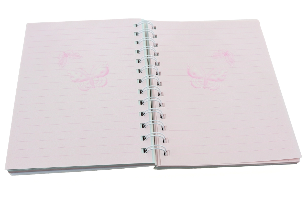 Erinevad pastelsed värvid koos silmapaistva „Butterfly” motiiviga kaanel annavad märkmikule isikupära.