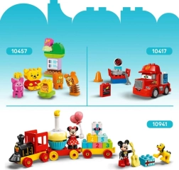 Komplektis on LEGO DUPLO hiireke Mickey figuur ja tema nutikas abiline Toodles, ikooniline punane auto ning värvilised klotsid lihtsaks ja turvaliseks ehitamiseks. Digitaalne juhend on saadaval rakenduses LEGO Builder. Komplekt on turvaliseks mänguks testitud ja on suurepärane kingitus väikestele sõidukite ja Mickey lugude fännidele.