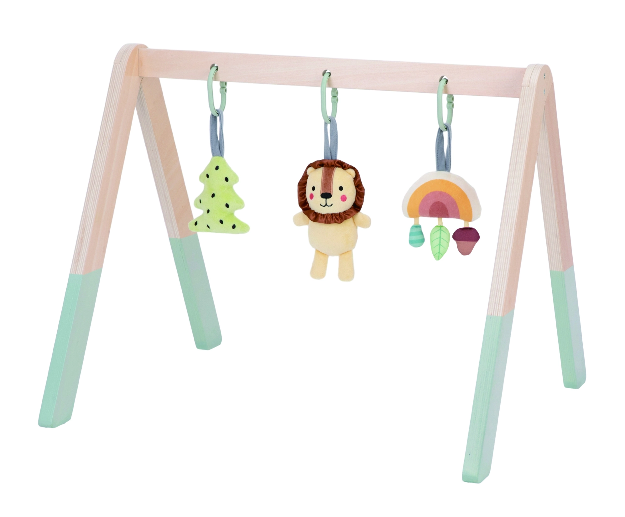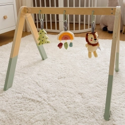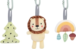 Komplekti kuulub värviline „väike puu“ ripats krabiseva efektiga, armas lõvi kõrina ja kellukesega ning särav vikerkaar kolme väiksema eri tekstuuri ja värviga elemendiga, mis vajutamisel vilistab. Kõik on teostatud pastelsetes toonides ja värvitud lastele ohutute värvidega.