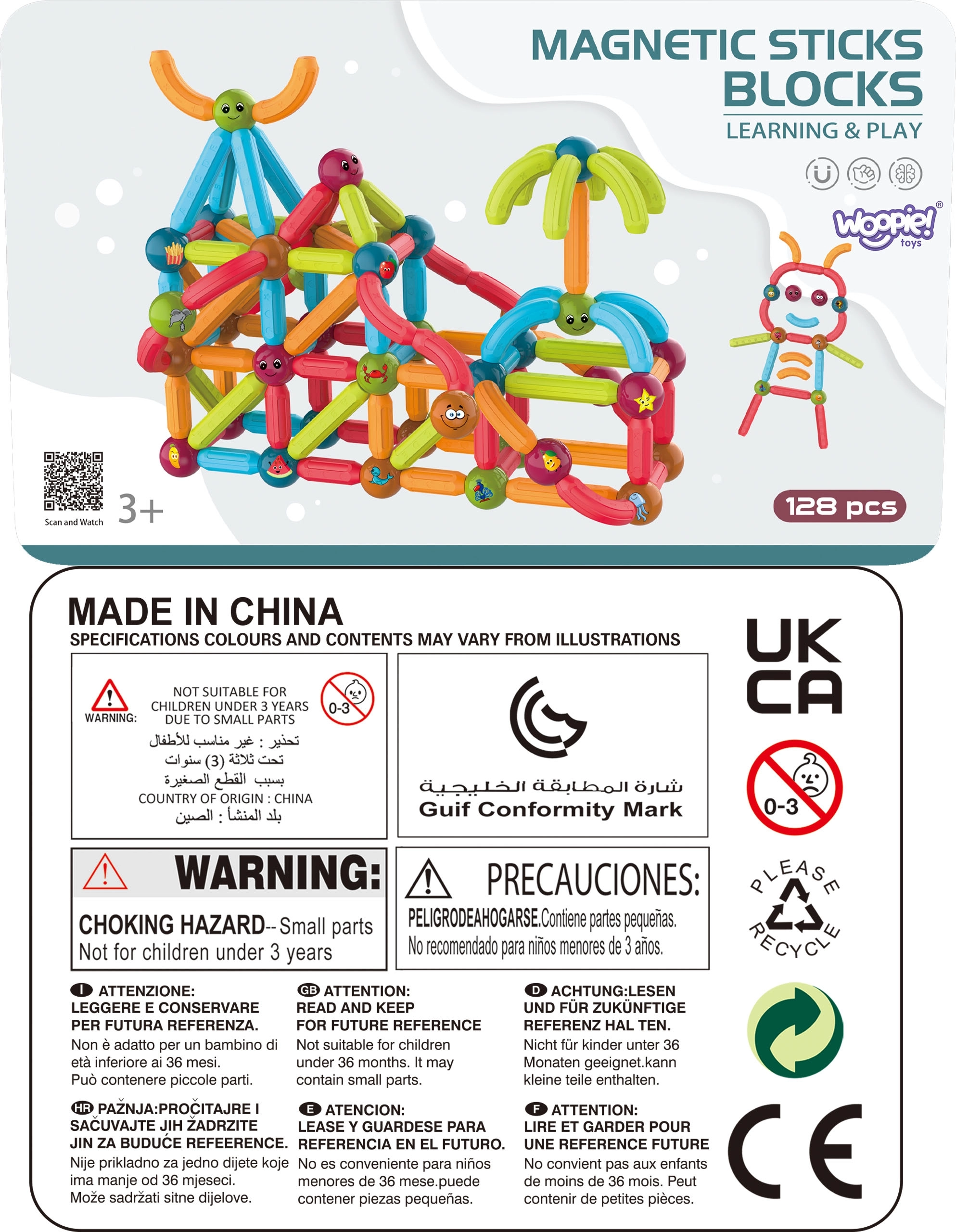 Avastage loominguline maailm WOOPIE 128-osalise magnetilise ehituskomplektiga, mis ühendab lõbu ja õppimise. Tänu suurtele, tugevatele ja ohututele detailidele saavad lapsed hõlpsalt luua 3D-konstruktsioone, geomeetrilisi kujundeid ja mini majakese. Komplekt arendab peenmotoorikat, ruumilist mõtlemist, loovust ja konzentratsiooni ning õpetab tähestikku, arvutamist ja kujundeid. Kaasas on ka mustrikaart ja praktiline kandekarp.