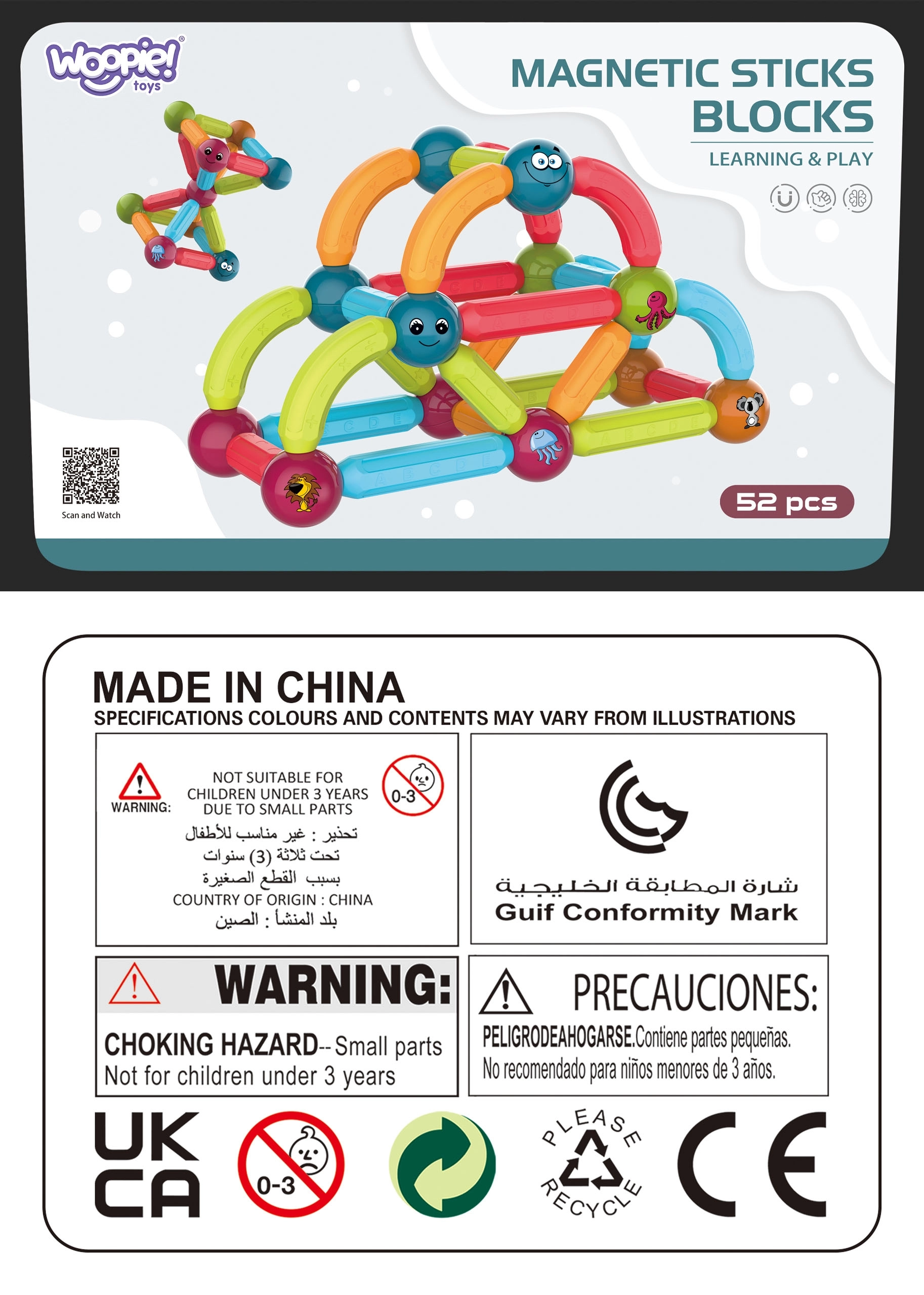 Lõbu ja õppimine ühenduvad kaubamärgi Woopie magnetilistes ehitusklotsides! Komplekt sisaldab 52 värvilist ja ohutut elementi, mis on ideaalsed väikestele kätele ning võimaldavad ehitada erinevat tüüpi konstruktsioone.