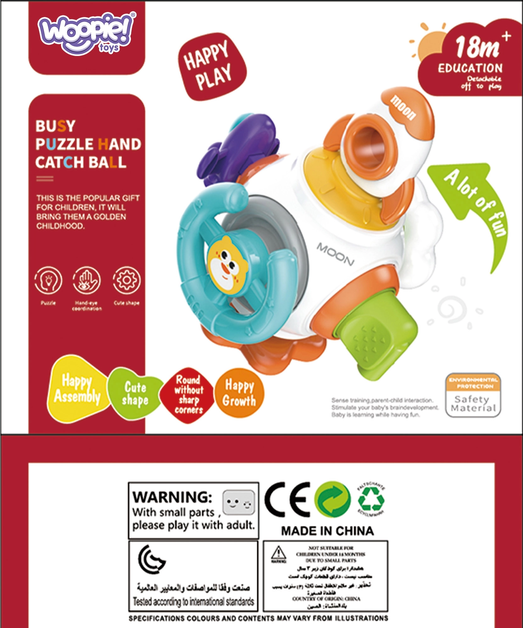 WOOPIE Montessori kosmoserakett on loodud pakkuma lastele lõbu ja õppimisvõimalusi juba varasest east. Sobib lastele alates 18. elukuust ning pakub mitmekesiseid sensoorsetimulatsioone tekstuursete pindade ja helide kaudu.