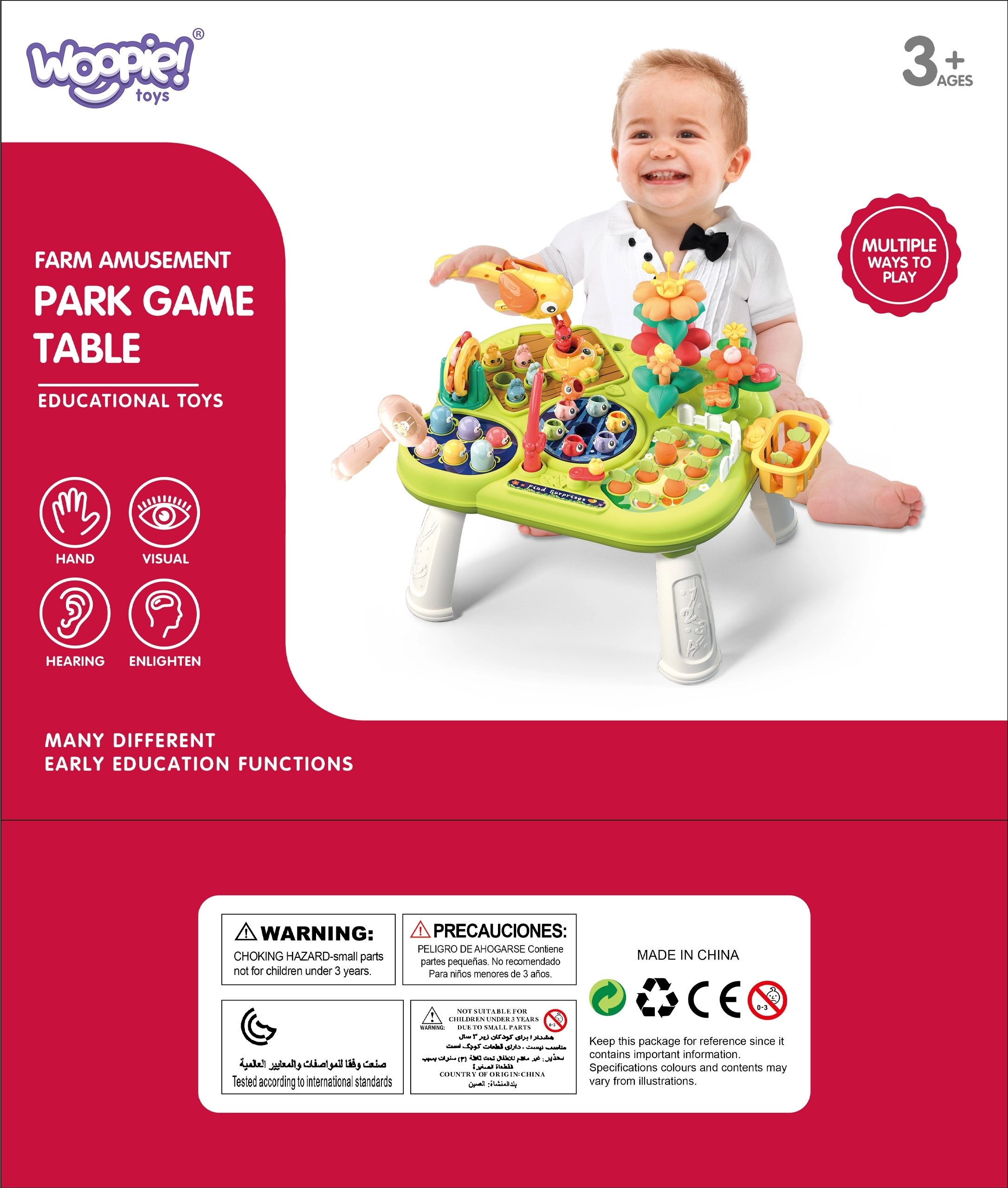 Interaktiivne multilaud WOOPIE toob lastele ühtaegu lõbu ja arengu. Tänu 8 tegevusele ühes pakub see pikki avastamistunde: kalapüük, ussikeste tagumine haamriga, aednikumäng lillede ja porganditega ning mäng linnukesega ussi välja tõmmates. Arendab peenmotoorikat, kannatlikkust, kontsentratsiooni ja silma-käe koordinatsiooni.