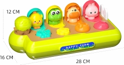 WOOPIE BABY pop‑up talufarm loomadega ühendab lõbu ja õppimise. Iga loomake hüppab välja õige tegevuse järel – vajutamisel, pööramisel või libistamisel. Nii avastab laps mänguliselt, kuidas ümbritsev maailm toimib, ning arendab käe‑silmakoordinatsiooni.