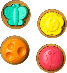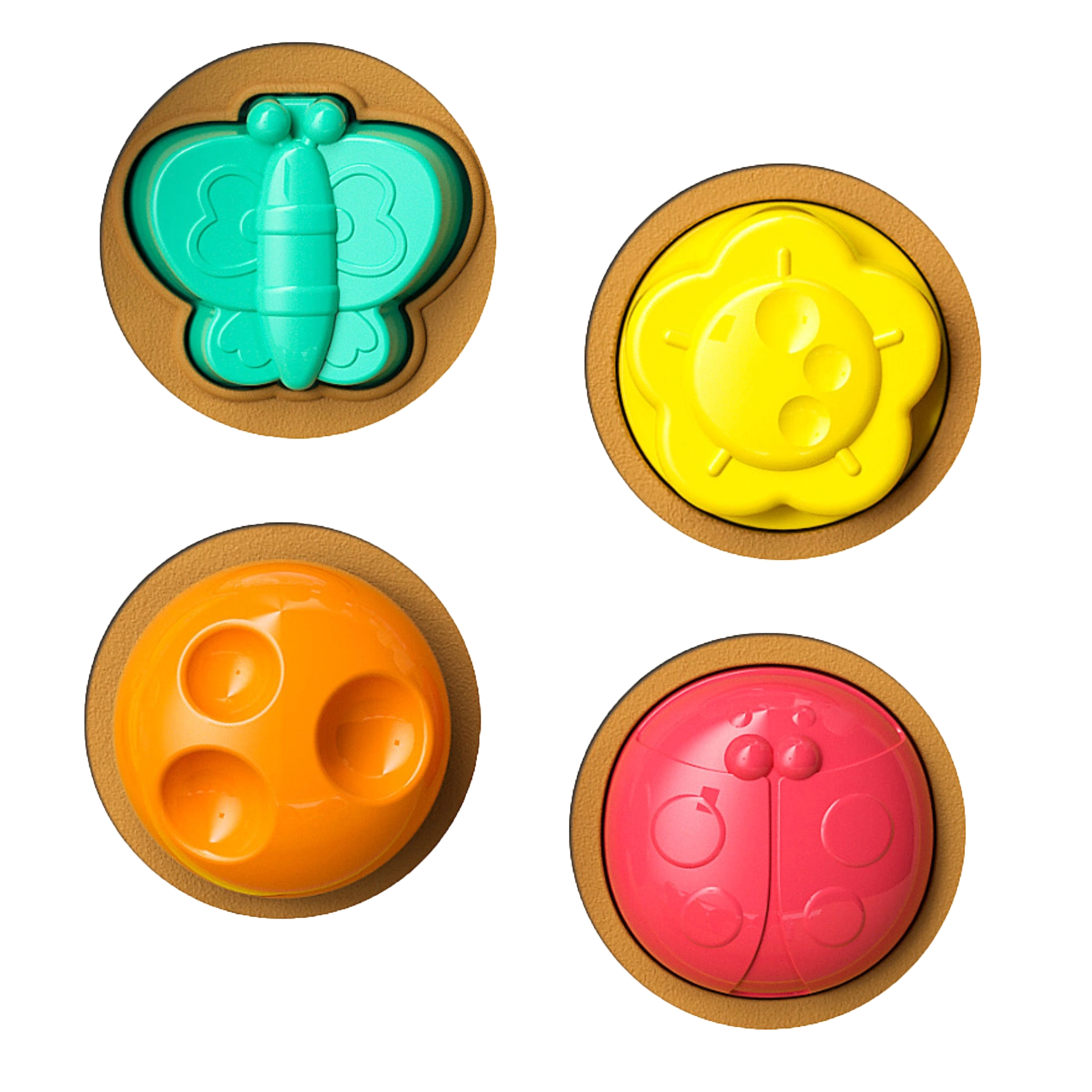 Värvilised elemendid, erinevad kujundid ja mehhanismid toetavad kompimismeelt, nägemist ja väikeste sõrmede täpsusliigutusi.
