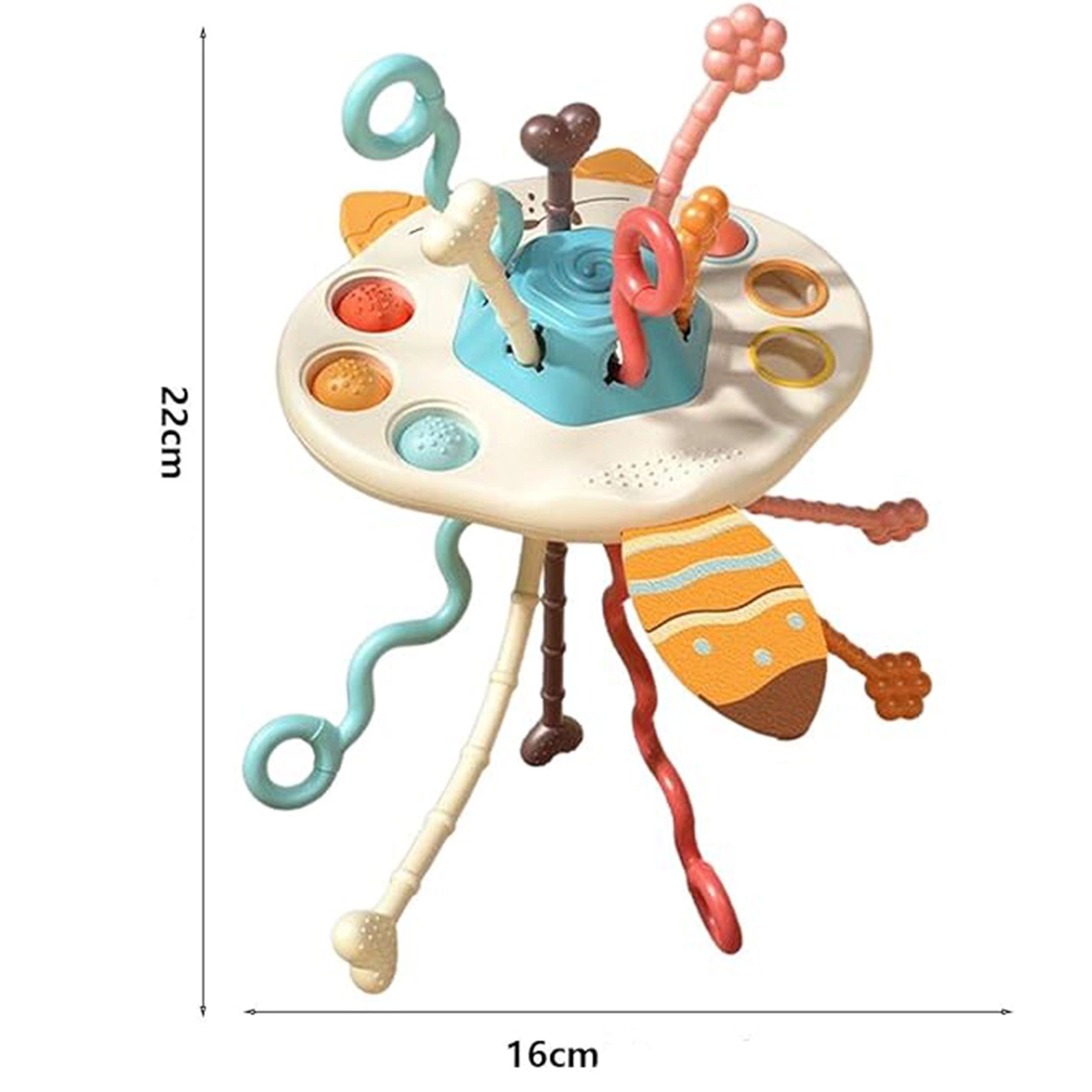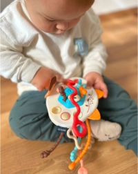 Kuus tekstuuriga nööri meelitavad last tõmbama ja avastama. Liigutamisel tekivad erinevad helid ja õrnad vibratsioonid, mis toetavad keskendumist ja sensoorset taju.