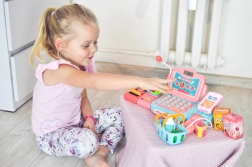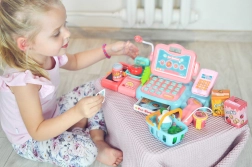 WOOPIE laste kassaaparaat on ideaalne väikestele müüjatele alates 3. eluaastast. Komplektis on 24 lisatarvikut, sh korv, puu- ja köögiviljad, joogid, jäätis, mänguraha ja maksekaart. Realistlikud elemendid nagu lugeja, kaal, mikrofon ja makseterminal loovad autentse ostukogemuse.