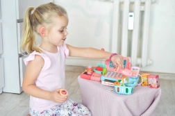 Poemäng toetab suhtlemist, koostööd ja finantskirjaoskuse põhialuseid. Lapsed saavad skaneerida kaupa, „kaaluda” puu- ja köögivilju, sisestada hindu ning valida makseviisi sularahas või kaardiga. Kvaliteetne ja turvaline plast tagab pika ja ohutu mängurõõmu.