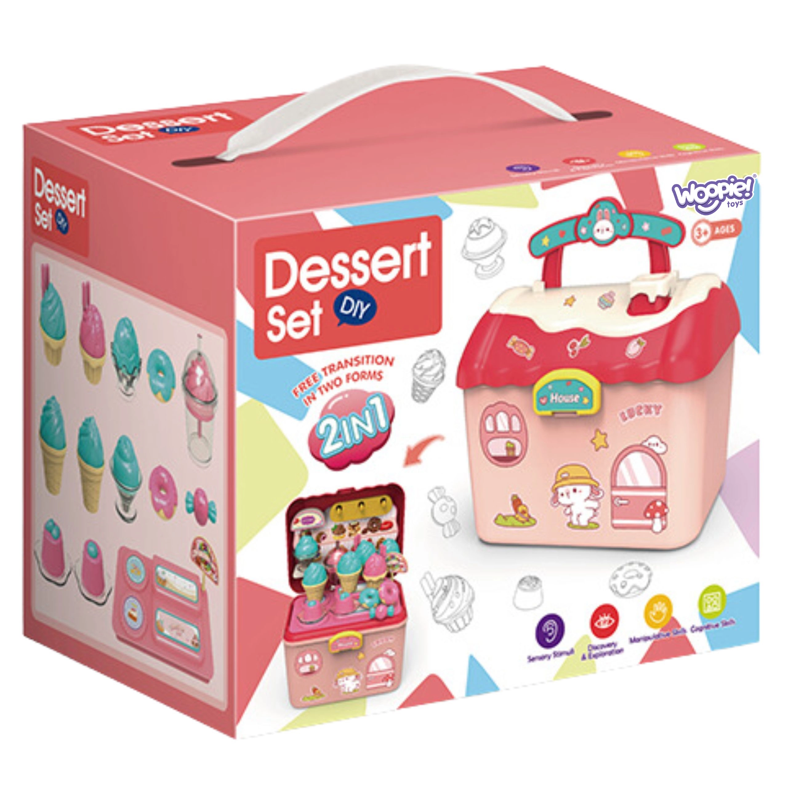 - Rohke maiusekomplekt: jäätised, donitsid, magustoidud, tordikesed, sheik ja muud tarvikud realistseks mänguks.