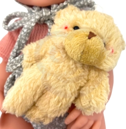 Komplekti kuulub pehme karuke, mida nukk saab väikesse kätte hoida. Soodustab emotsionaalset sidet ja rahustavaid rituaale mängu ajal.