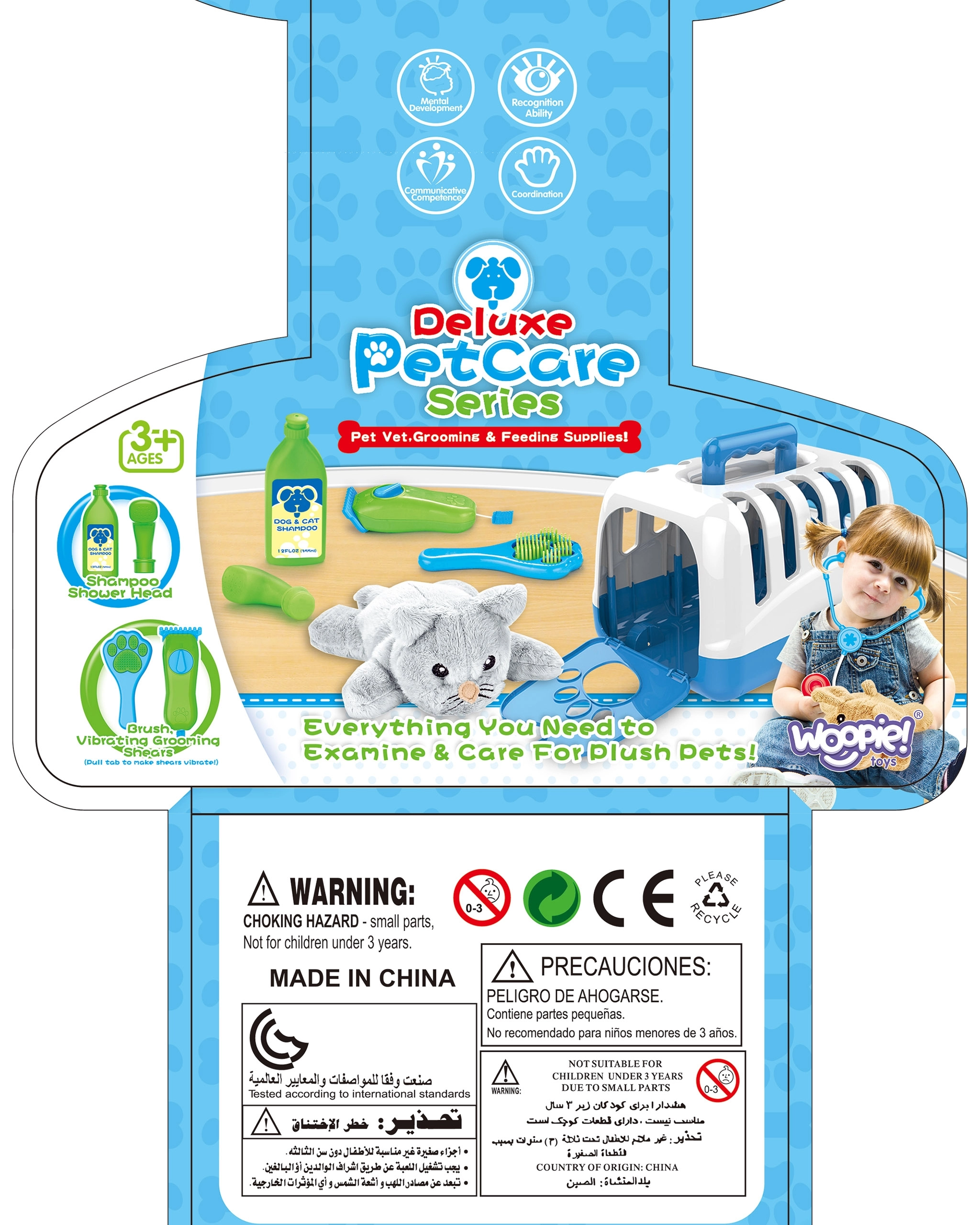 WOOPIE väikese veterinaari komplekt sobib ideaalselt alates 3-aastastele lastele, kes armastavad loomi ja ametimänge. See sisaldab kõike vajalikku pehme koera eest hoolitsemiseks – alates harjast kuni šampoonini – ning võimaldab lastel matkida päris lemmikloomahooldust.