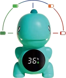 Nautige rahulikku vanniskäiku ilma muredeta. Laste termomeeter WOOPIE Dino mõõdab täpselt vee ja õhu temperatuuri ning kuvab kõik selgel elektroonilisel ekraanil. Värviline taustvalgus annab kohe märku, kas vesi on liiga külm, paras või liiga kuum.