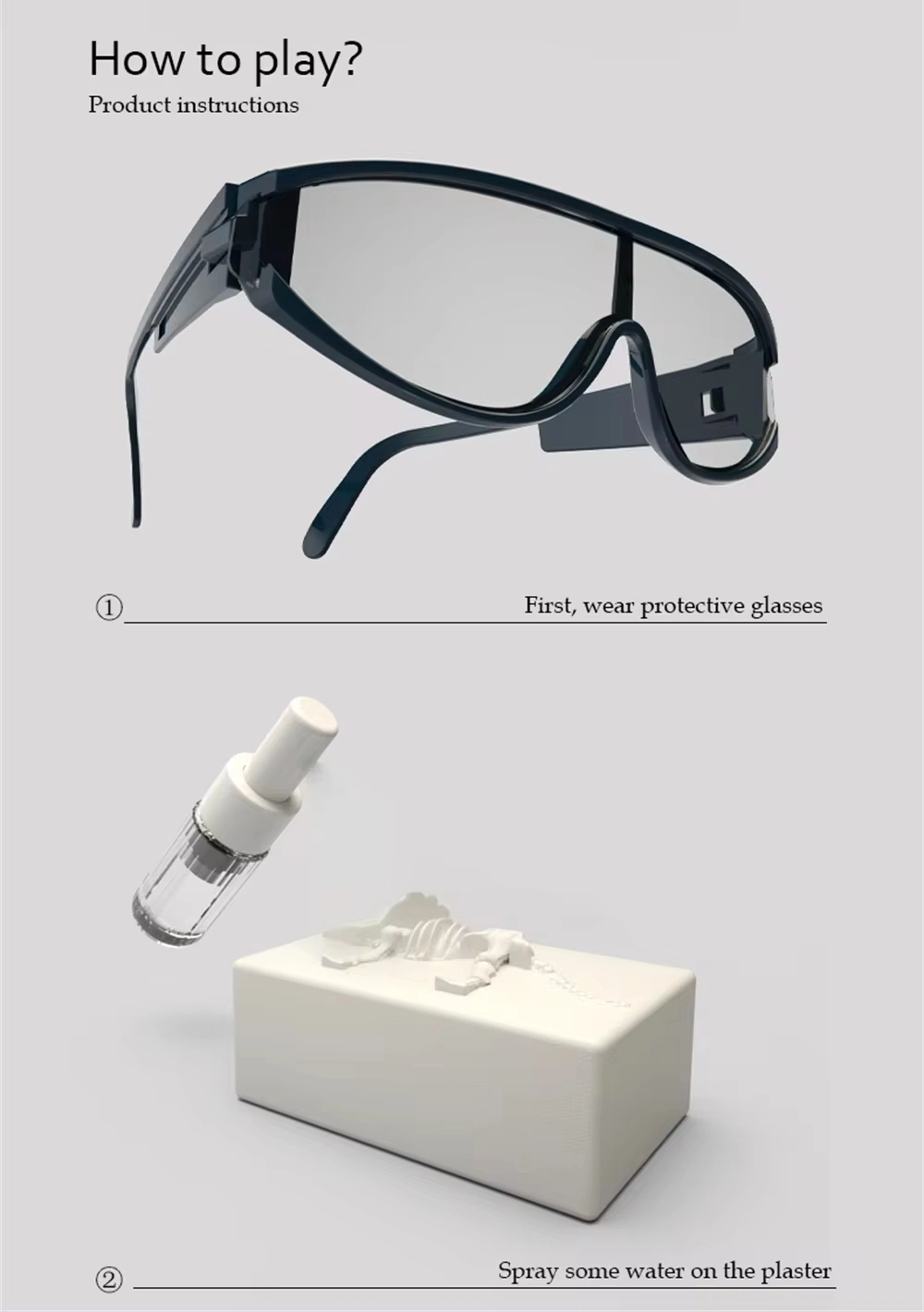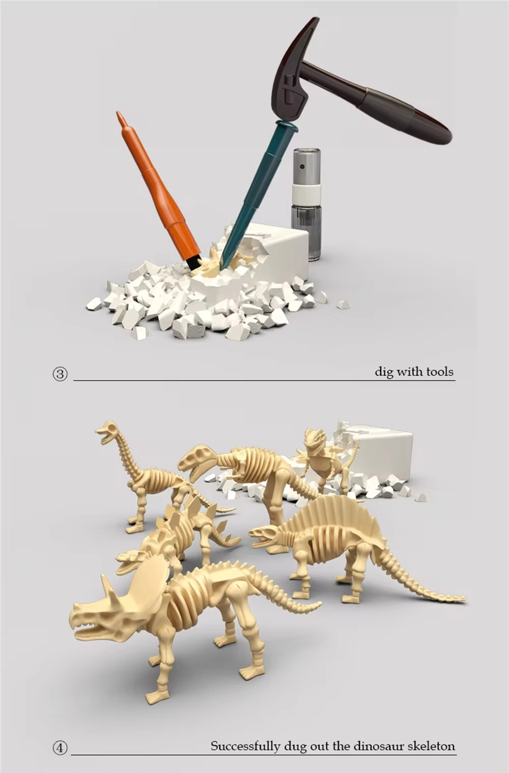 Selle loomingulise komplektiga sukeldub laps prehistoorilisse maailma ja proovib päris paleontoloogi tööd. Iga kipsplokk peidab endas killukest ajalugu – dinosauruse skeleti, mis tuleb hoolikalt välja kaevata, puhastada ja kokku panna. Suurepärane kingitus uudishimulikele lastele alates 8. eluaastast, mis toetab osavust, keskendumist ja loodusteaduste vastu huvi.