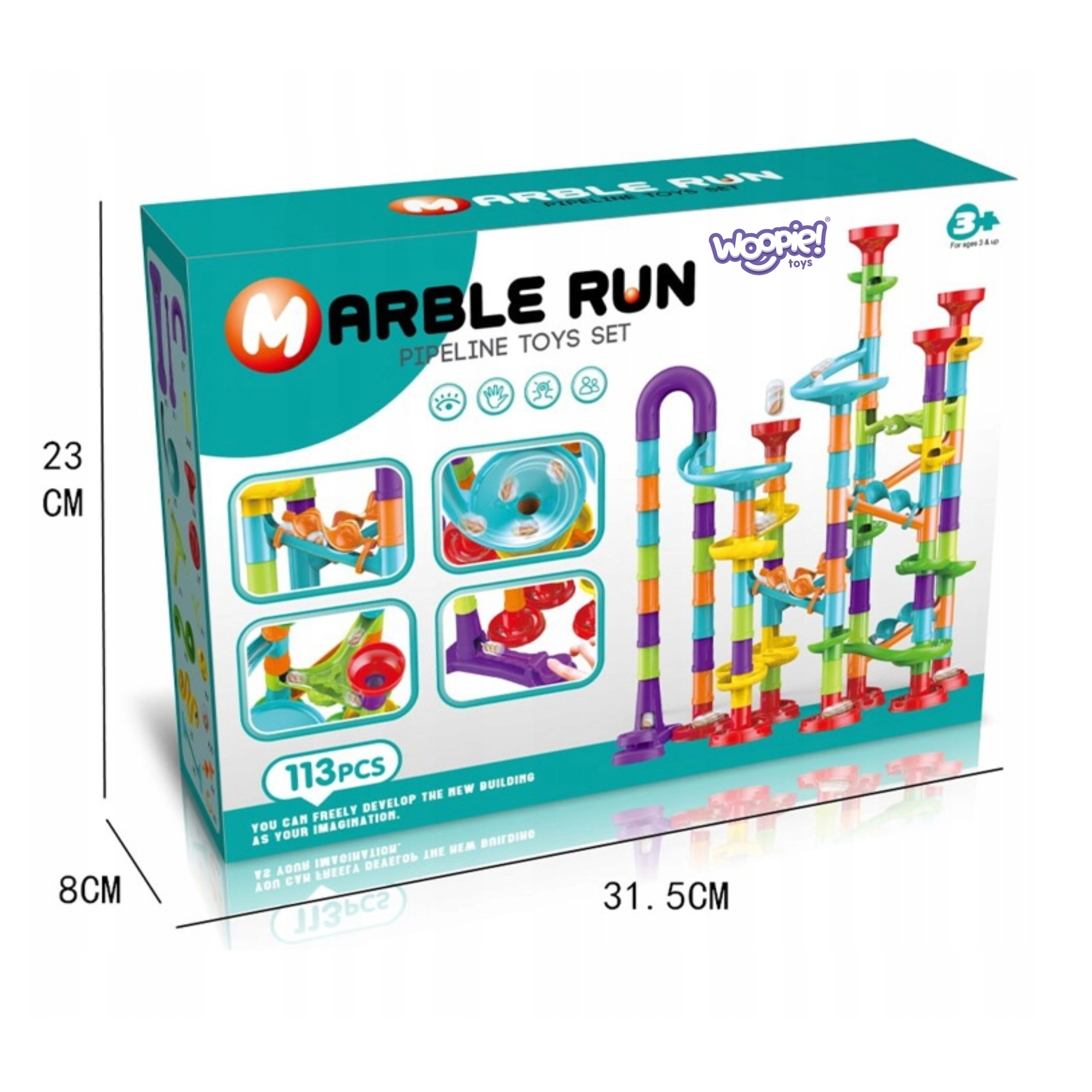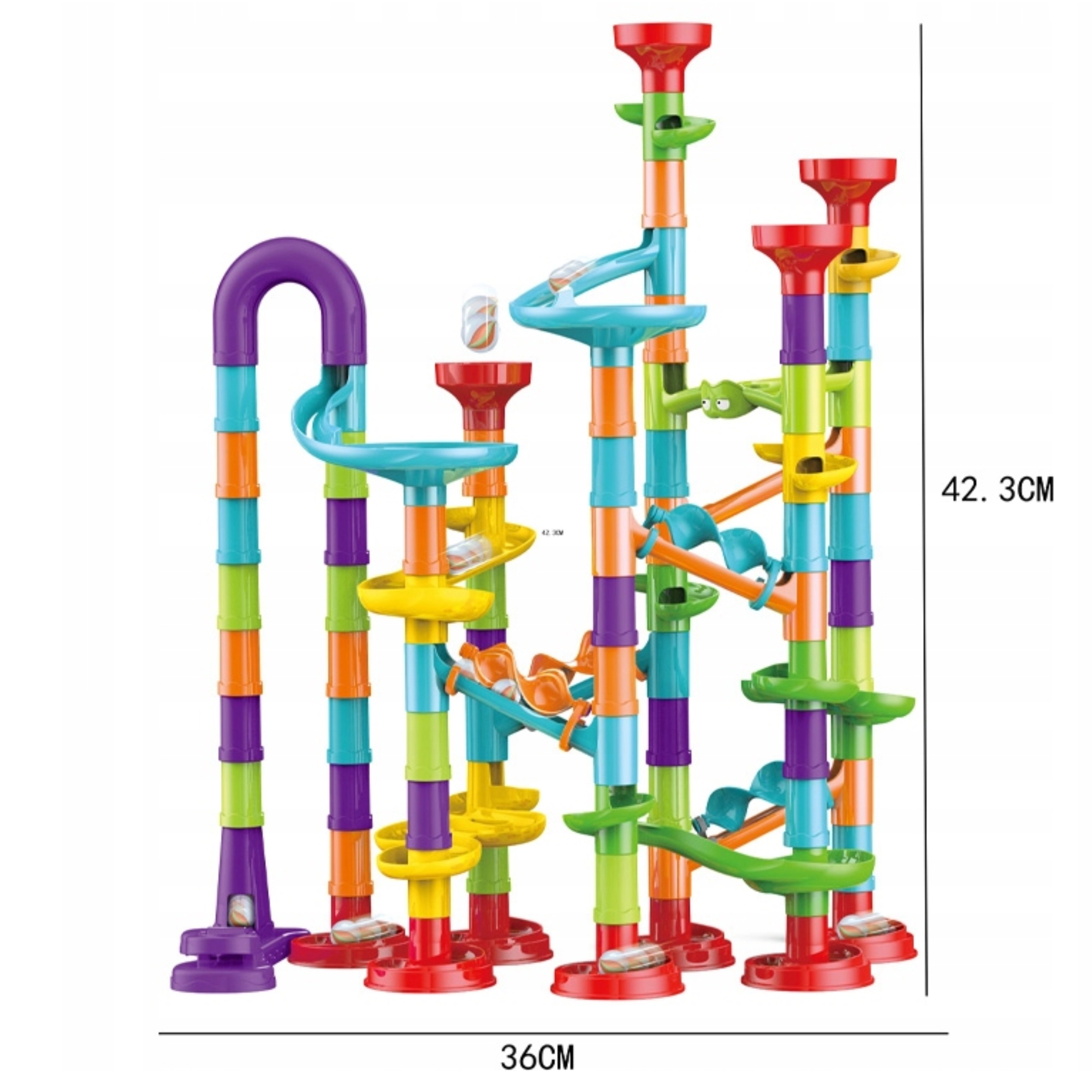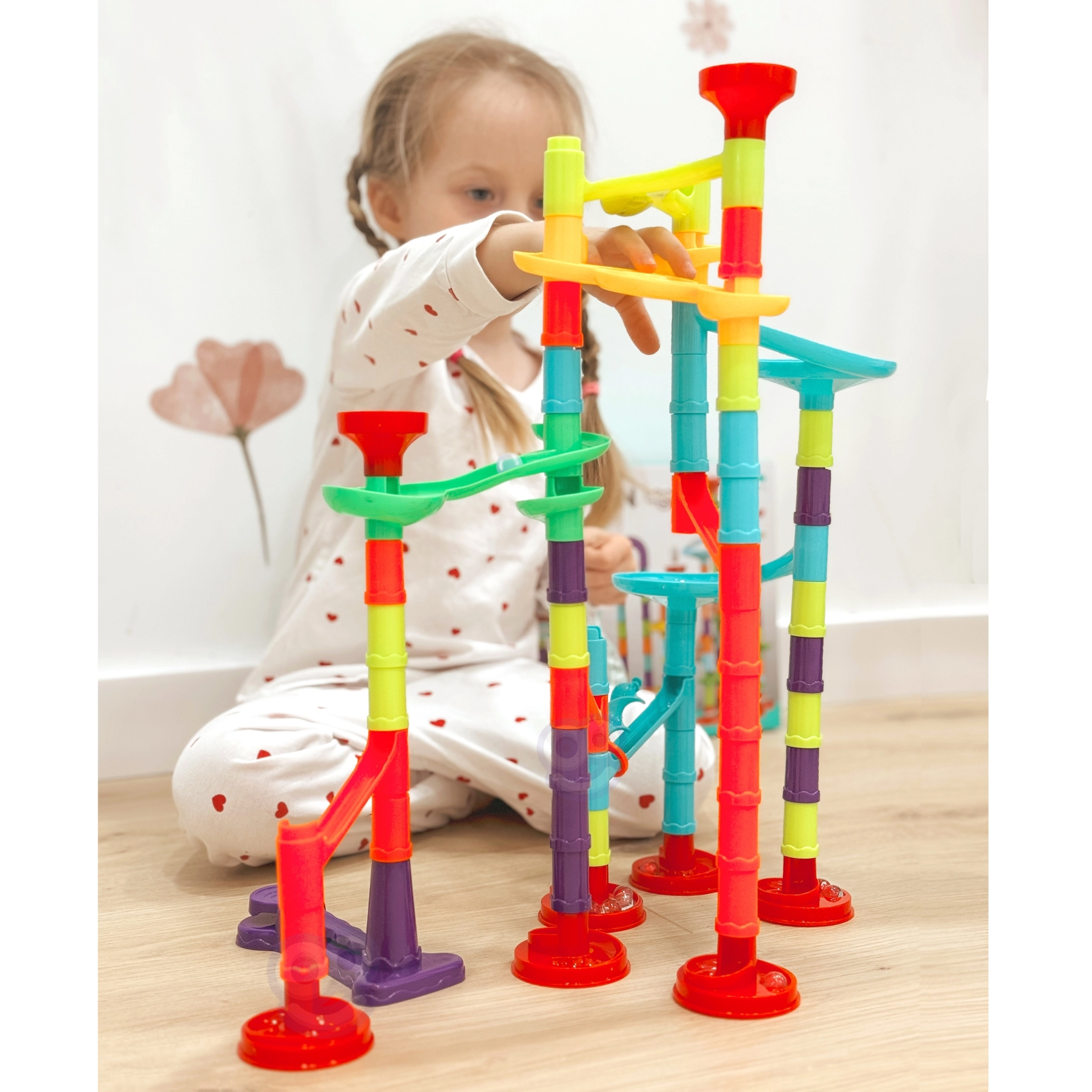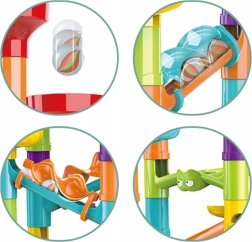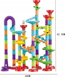 Kvaliteetsed plastdetailid ühenduvad hõlpsalt ja püsivad kindlalt. Umbes 10 mm läbimõõduga kuulid veerevad sujuvalt nii läbipaistvate kui ka värviliste elementide kaudu. Valmis rada on kompaktsete mõõtmetega ning sobib ka väiksematesse lastetubadesse.