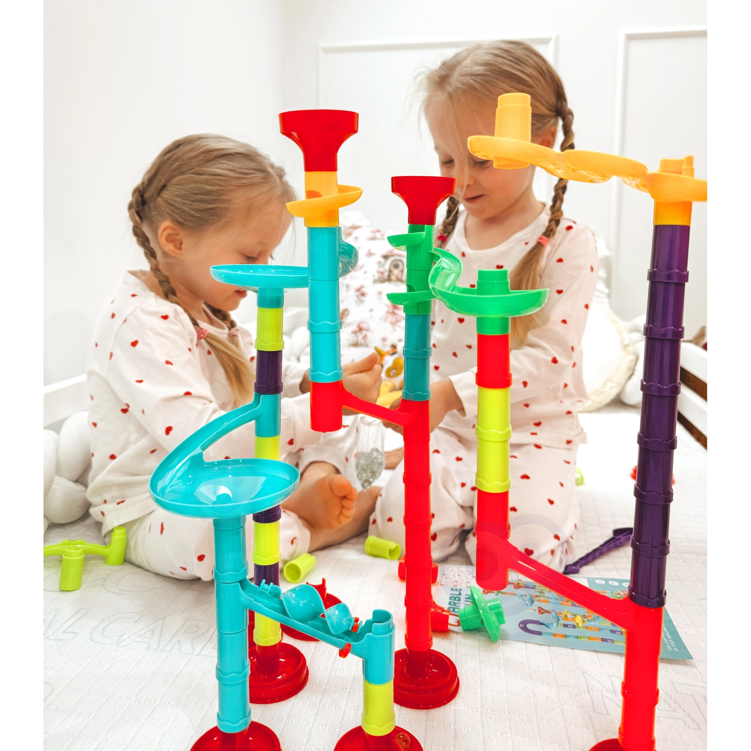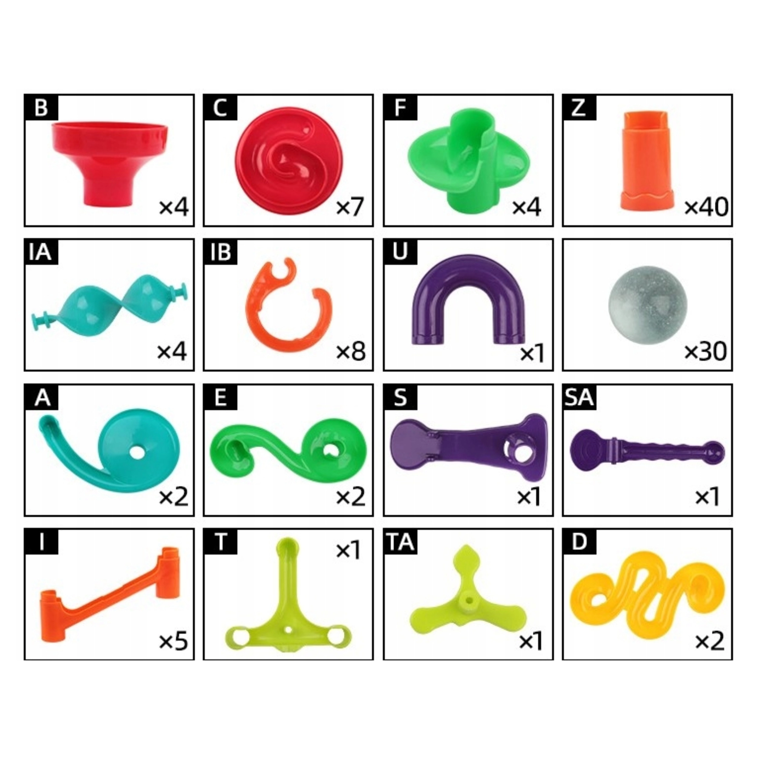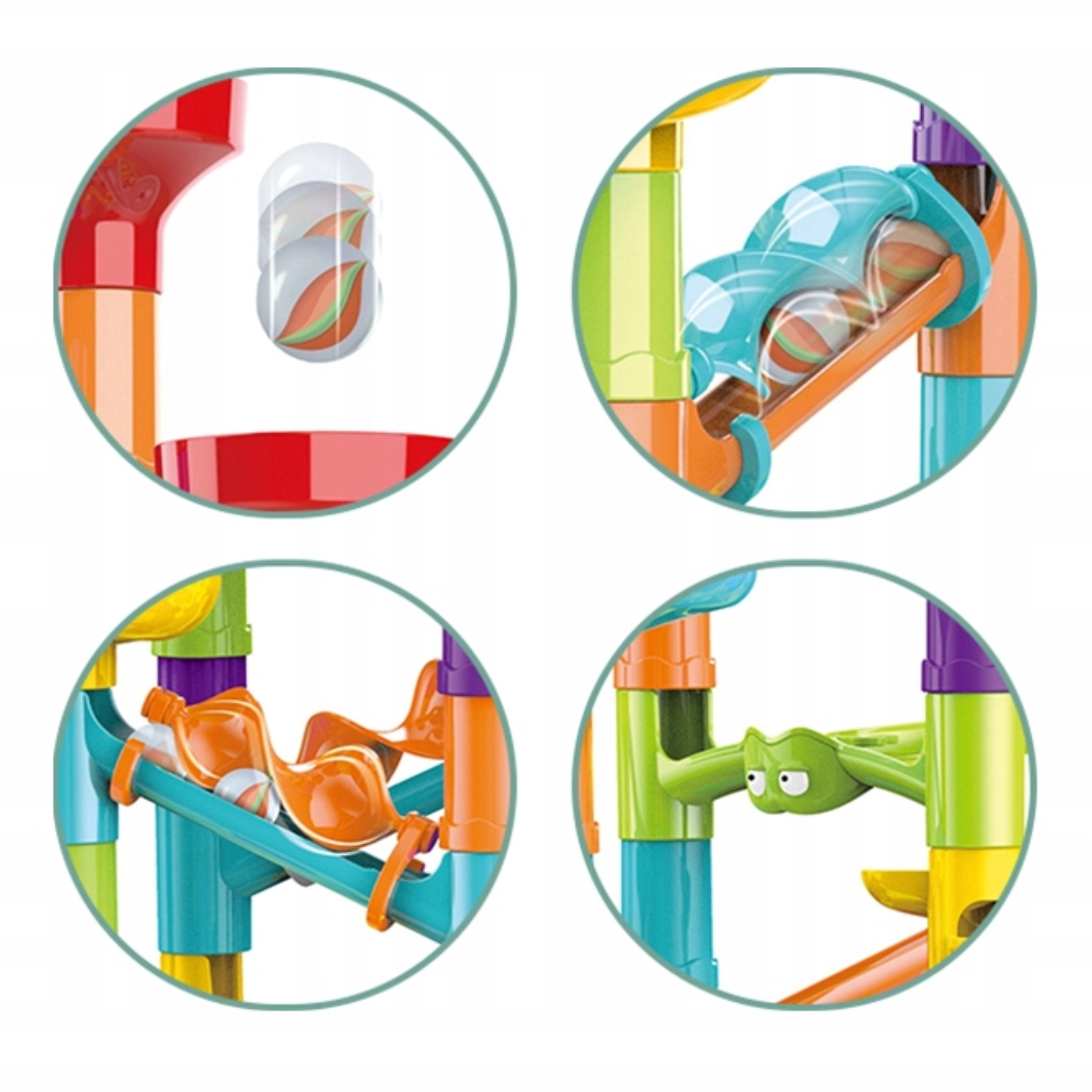 Erinevad torud, kurvid, spiraalid, lehtrid ja postid võimaldavad ehitada alati uue ja põneva kuuliraja. Ehitage juhendi järgi või looge oma nutikaid radu.