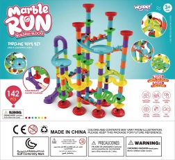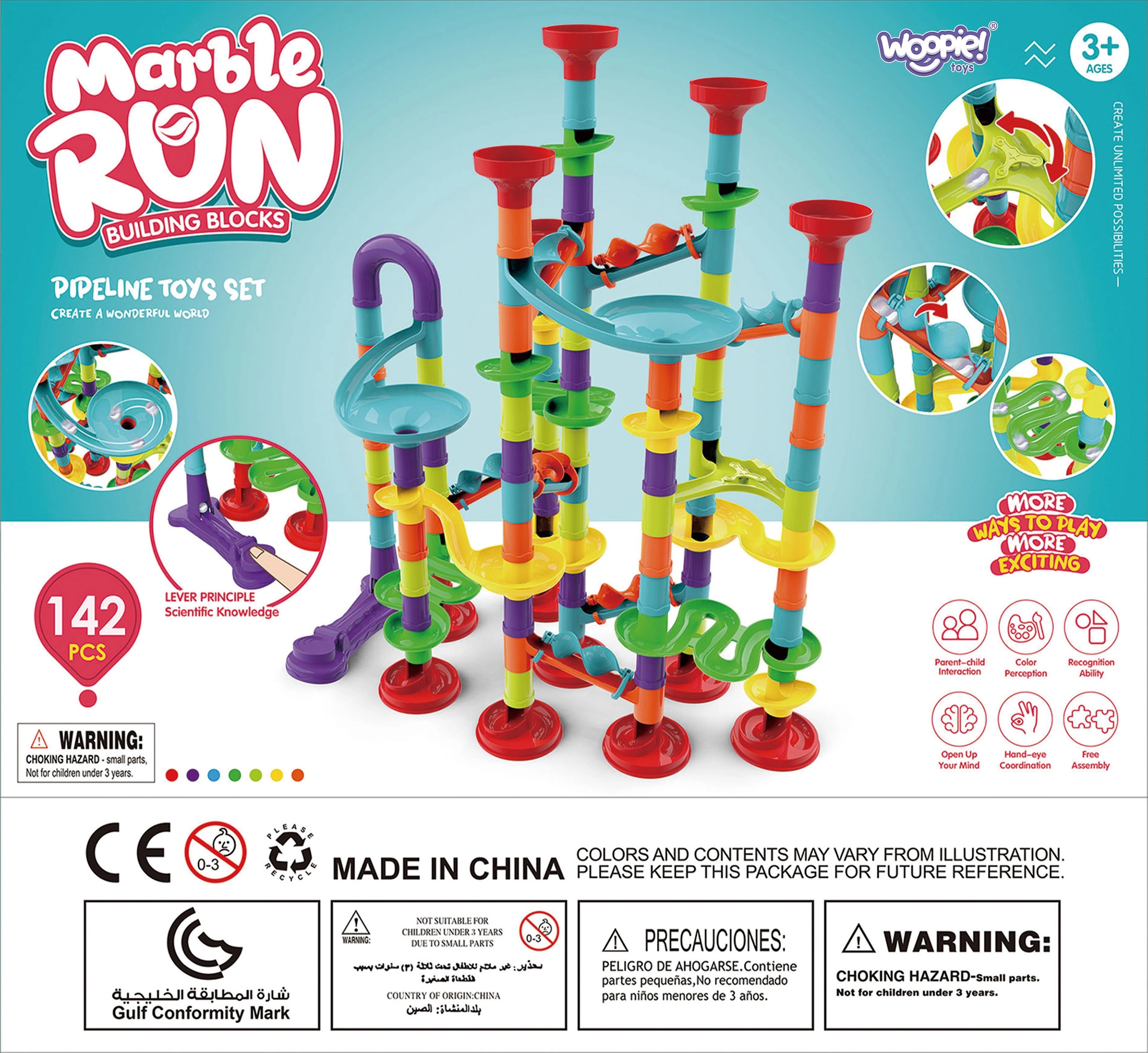Ehita oma kiirete kuulide maailm! See mitmekesine komplekt pakub laia valikut kujusid ja kaari spiraalsete ja dünaamiliste radade loomiseks. Osad sobituvad sujuvalt, nii et lapsed alates 3. eluaastast saavad ehitada iseseisvalt või koos vanematega. Pakendi tagaküljelt leiad näidistraja kavandi, mis kasutab kõiki komponente.
