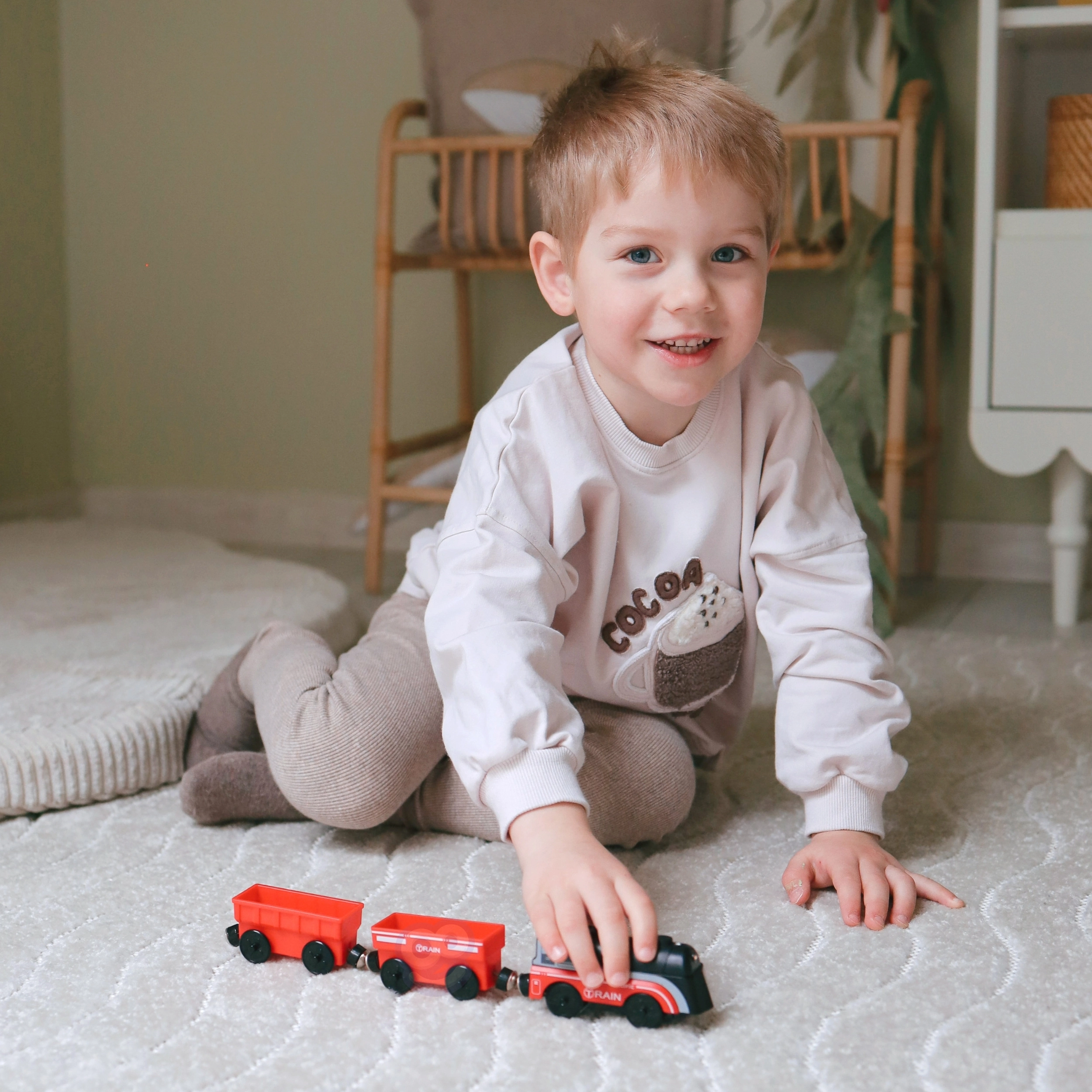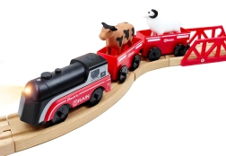 Komplekt kasutab vagunite magnetühendust kiireks ja intuitiivseks kokkupanekuks. Vedur töötab ühe AAA patareiga (ei kuulu komplekti), süütab sõidu ajal tule ja liigub sujuvalt nagu päris rong. Tänu standardsele rööpmelaiusele on ühilduv enamiku puidust radadega (rööpa laius u 4 cm, telje laius u 2,5 cm) – sobib hästi IKEA, Brio ja teiste komplektidega.